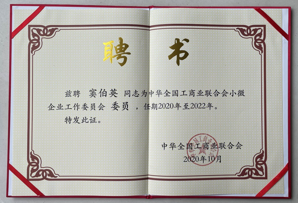 為進(jìn)一步落實(shí)新時(shí)代民營經(jīng)濟(jì)統(tǒng)戰(zhàn)工作的要求,有效擴(kuò)大統(tǒng)戰(zhàn)工作覆蓋面,加強(qiáng)與小微企業(yè)的聯(lián)系,積極打通小微企業(yè)參政議政的通道,推動改善小微企業(yè)發(fā)展環(huán)境,經(jīng)中華全國工商業(yè)聯(lián)合會(簡稱:全國工商聯(lián))2020年第10次主席辦公會議研究,成立全國工商聯(lián)小微企業(yè)工作委員會,并聘請洛陽泰斯特探傷技術(shù)有限公司(簡稱:泰斯特公司)CEO竇伯英女士出任中華全國工商業(yè)聯(lián)合會小微企業(yè)工作委員會委員。