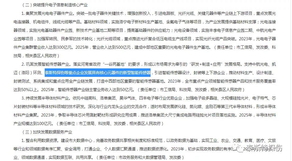 根據(jù)落實河南省政府“一谷兩基地”的要求,形成以市場需求為牽引的“研發(fā)+制造+應(yīng)用”發(fā)展格局。支持泰斯特探傷等企業(yè)發(fā)展具有核心元器件的新型智能傳感器,引進(jìn)智能傳感器設(shè)計、封裝等上下游企業(yè),推動材料生產(chǎn)、設(shè)計制造、封裝測試、系統(tǒng)集成和重點應(yīng)用全產(chǎn)業(yè)鏈發(fā)展,打造中西部地區(qū)重要的智能傳感器基地。