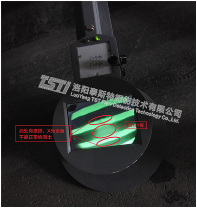 由于該礦對(duì)輸送帶鋼繩芯檢測(cè)設(shè)備的概念和認(rèn)識(shí)局限于他們之前采購使用但直不滿意的X光手持檢測(cè)設(shè)備(客戶反映X光設(shè)備僅僅只能檢測(cè)斷絲,而且設(shè)備笨重檢測(cè)率低下且對(duì)使用人員有危害,維護(hù)人員為排斥)。TST磁技術(shù)的輸送帶鋼繩芯在線自動(dòng)監(jiān)測(cè)系統(tǒng)對(duì)該礦維護(hù)人員來說既新奇又疑慮。為了讓該礦客戶對(duì)TST設(shè)備的性能有個(gè)直觀震撼的認(rèn)識(shí),我公司主動(dòng)要求在現(xiàn)場(chǎng)與X光檢測(cè)設(shè)備驗(yàn)傷比試。
