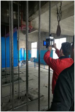 我公司工程技術(shù)人員韓洪波在對(duì)平煤集團(tuán)相關(guān)人員做了充分詳細(xì)的技術(shù)交流后,在平煤X礦主豎井現(xiàn)場(chǎng),驗(yàn)傷工況環(huán)境相對(duì)十分簡(jiǎn)陋惡劣。緊張而細(xì)致的驗(yàn)傷準(zhǔn)備工作做完了,在平煤集團(tuán)部分導(dǎo)的關(guān)注下,我工程技術(shù)人員韓認(rèn)真細(xì)心、嚴(yán)謹(jǐn)規(guī)范的操作,熟練高的完成了檢測(cè)步驟。當(dāng)他們打開檢測(cè)結(jié)果報(bào)告時(shí),所有損傷均有檢測(cè)出來(lái),處損傷在3.81米,損傷大小為2.99%;二處損傷在5.61米,損傷大小為11.19%;三處損傷在9.82米,損傷大小為1.53%。查看損傷類型,前兩處為斷絲,后處為磨損,同時(shí)傷值的位置完正確與實(shí)際做傷情況完符合。